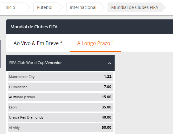 Assim, no momento em que escrevemos essas linhas, a chance de o Manchester City se converter no novo campeão do mundo de clubes está cotada a 1.22, ao passo que uma vitória do Fluminense vale 7.00 por cada unidade apostada.