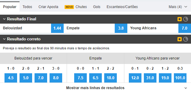 Vejamos o exemplo de uma partida da fase de grupos da competição entre o Belouizdad e o Young Africans.