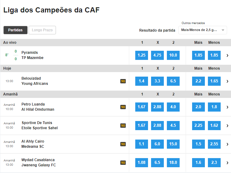 A generalidade das Casas de Apostas já apresenta mercados para apostar na maioria dos encontros da Liga dos Campeões Africana.