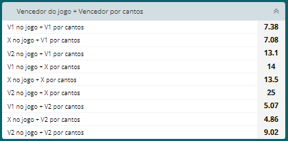 Nesse mercado, aquilo que está fazendo é apostar no vencedor do jogo e, no mesmo tempo, no vencedor da partida por escanteios.