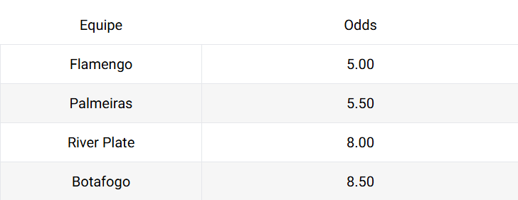 Ainda que as Casas de Apostas coloquem o time Carioca atrás de Flamengo, Palmeiras e até do River Plate, o Botafogo também surge aqui como um dos mais fortes candidatos à conquista da Libertadores 2025 para as Casas de Apostas.