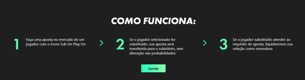 3. Se o jogador que entrou cumprir o requisito da aposta (marcar gol, receber cartão, por exemplo), sua aposta será paga;