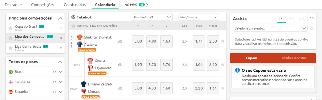 Do ponto de vista estrutural, a plataforma respeita o “padrão” da generalidade das Casas de Apostas.