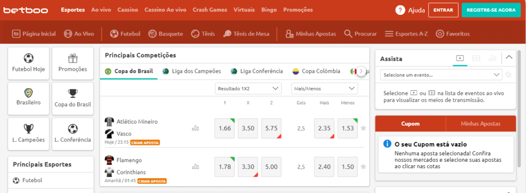 Escolha a opção mais conveniente em sua perspetiva e comece a apostar na Betboo.