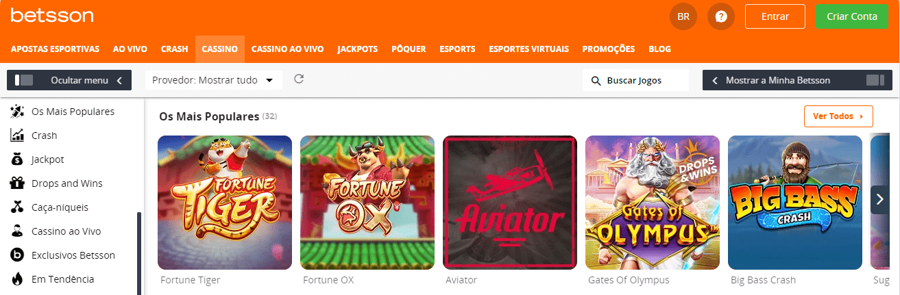 Fique ligado nas categorias dispostas na barra lateral esquerda do Betsson Cassino. Acesse a categoria associada aos jogos da sua preferência e comece a lucrar com esse extenso lote de jogos de Cassino.