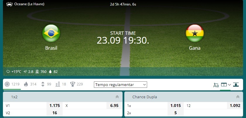 No exemplo abaixo poderá encontrar uma partida amistosa da seleção brasileira disponível para apostas na 1xBet.