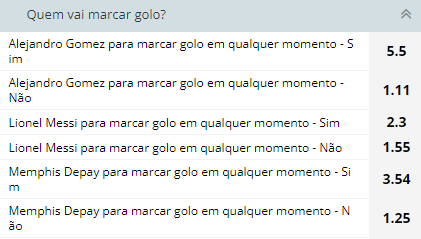 Já na equipe neerlandesa, as odds indicam que Memphis Depay é o homem com maior probabilidade de chegar ao gol, já que a cotação que tem associada é de 3.54.