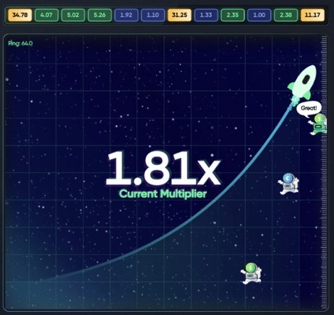 A cada ronda, os jogadores seguem um foguetão (ou elemento idêntico) que tem um multiplicador associado.