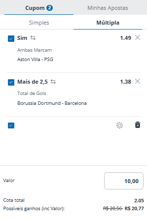 - Borussia Dortmund – Barcelona: Mais de 2.5 Gols
