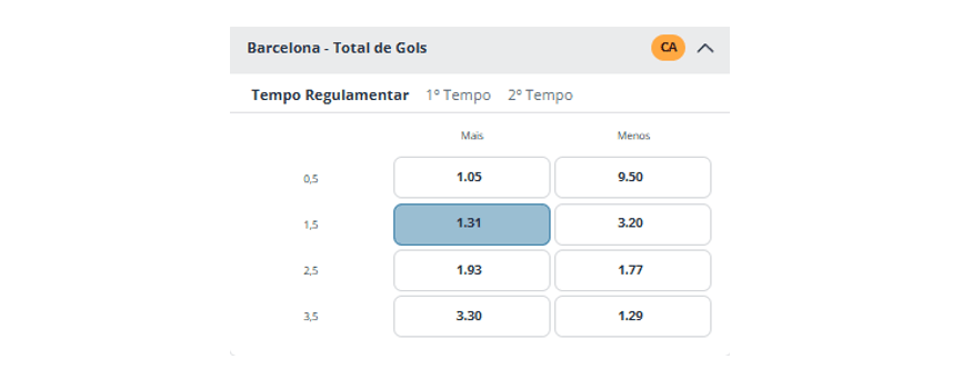 • Barcelona – Mallorca: Barcelona Mais de 1.5 Gols