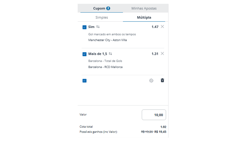 • Manchester City – Aston Villa: Gols em ambas as partes
