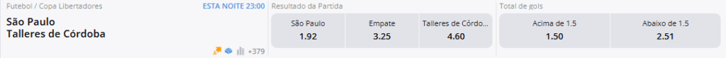 - São Paulo – Talleres: Mais de 1.5 Gols