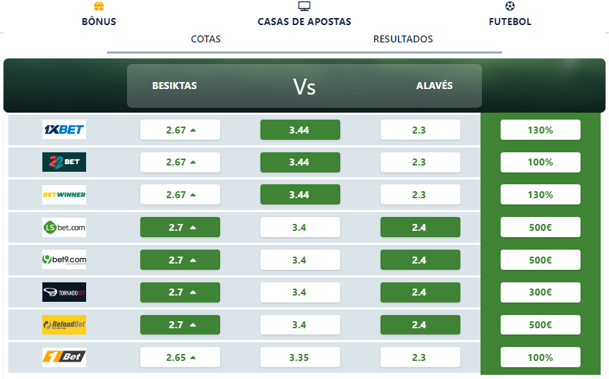 É por isso que consideramos essencial estar atento a todas as Casas de Apostas e aos valores por elas disponibilizados.
