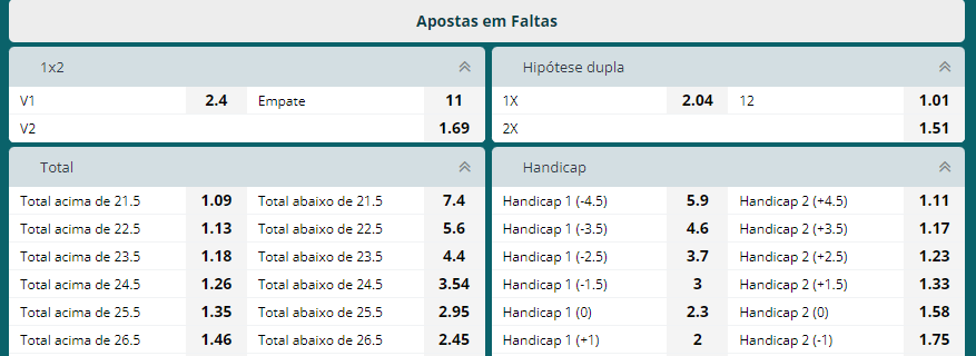 Abaixo poderá encontrar o exemplo de um mercado para apostas em faltas.