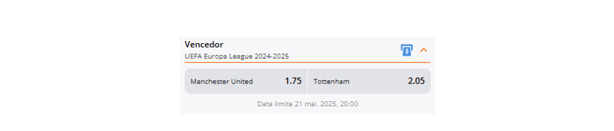 No momento em recolhemos essas odds, as Casas de Apostas avaliam a chance de vitória do Manchester United na competição a 1.75, ao passo que uma possível conquista do Tottenham está cotado a 2.05.